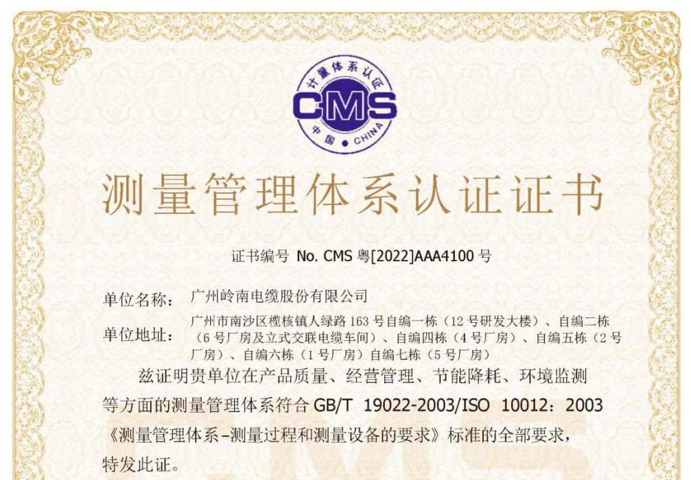 近日,智光电气控股公司广州岭南电缆股份有限公司(以下简称“岭南电缆”)测量管理体系顺利通过认证审核,荣获AAA级“测量管理体系认证证书”,标志着岭南电缆在产品质量、经营管理、节能降耗、环境监测等方面的...