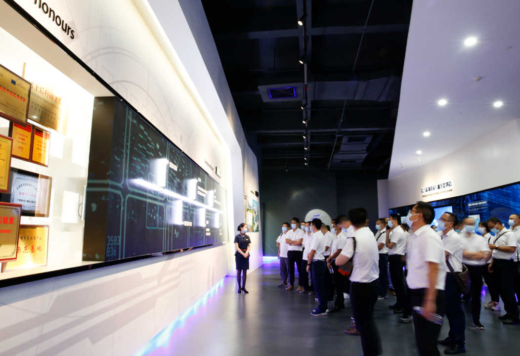 参观总部展厅时,展厅讲解员向班站长们介绍了智光电气的发展历程、专利与荣誉、综合能源服务场景、技术的研究开发、产品的升级改造、市场的推广方式等内容,及智光电气“帮助客户安全、节约、舒适地使用能源”的经营理念。