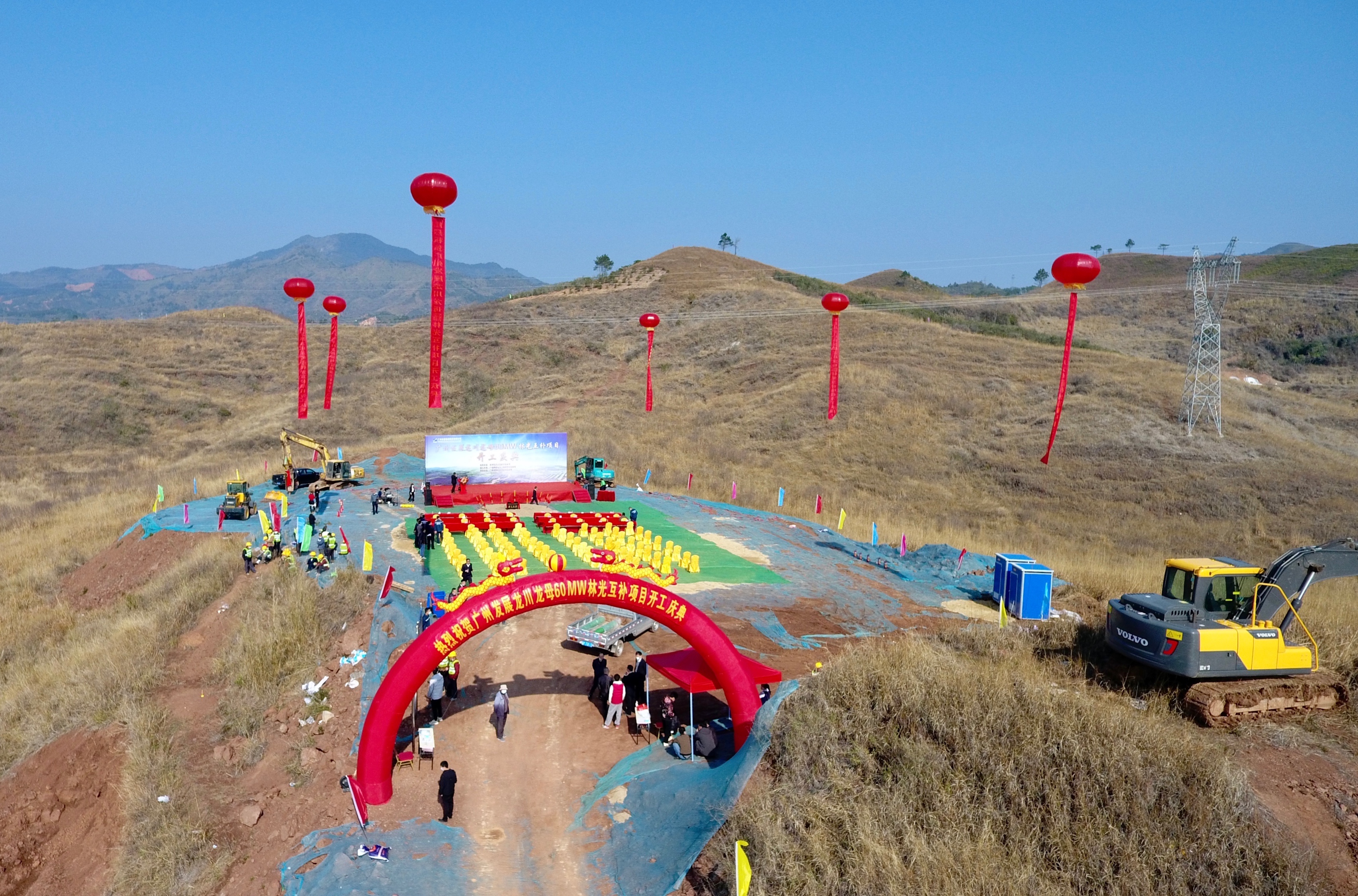 在礼炮奏乐的喜庆氛围下,领导及嘉宾为广州发展龙川龙母60MW林光互补项目奠基培土,表达对项目的美好祝愿,也表达了全心全意为项目实施提供良好服务的决心。